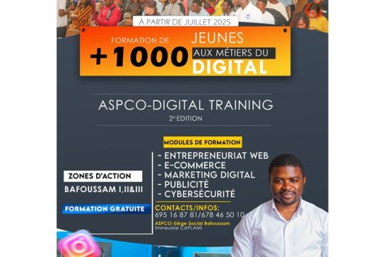 L’association ASPCO lance, à partir de juillet 2025, la 2ᵉ édition du programme ASPCO-DIGITAL-TRAINING, une initiative portée par Orlus Fosso et son équipe de jeunes dynamiques, animés par un objectif...